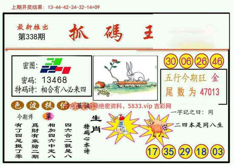 【精解抓码王】开(狗08) 338期:相合有八必来四 【主攻抓肖】牛鼠马虎猴狗蛇鸡兔 【抓码双波】红绿波 |